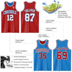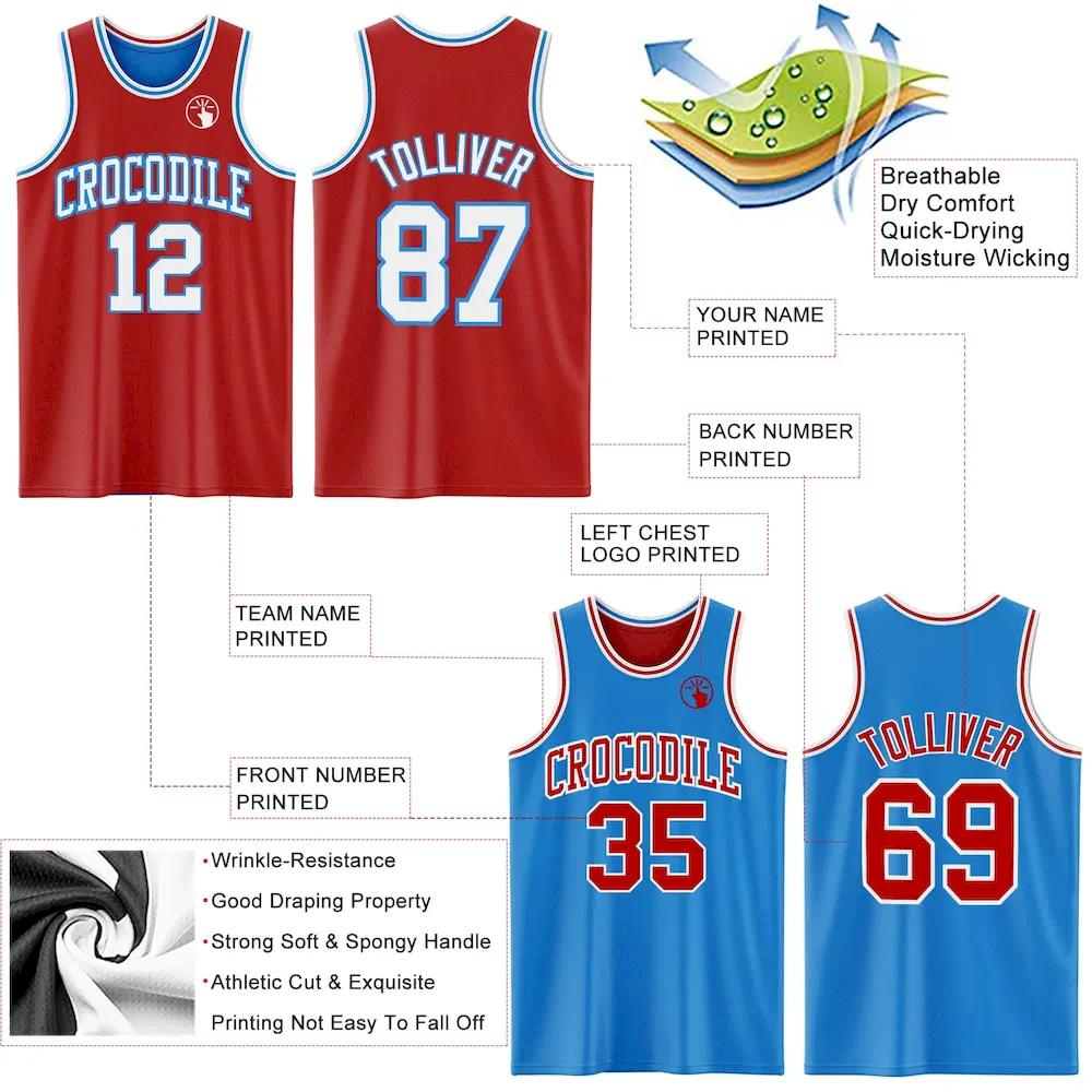 Custom Reversible Red White-Powder Blue Double Side Basketball Jersey