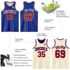 Custom Reversible Royal Red-Cream Double Side Basketball Jersey