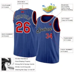 Custom Royal White Pinstripe Red-Black Authentic Basketball Jersey