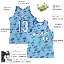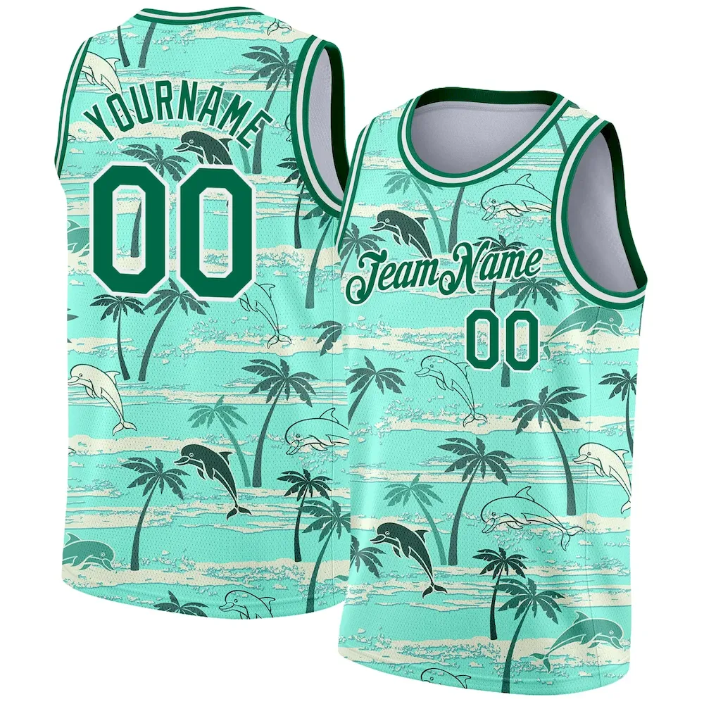 Custom Teal Kelly Green-White 3D Pattern Tropical Hawaii Palm Trees Authentic Basketball Jersey