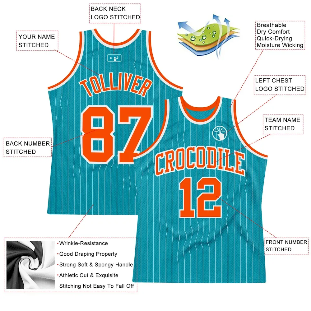 Custom Teal White Pinstripe Orange Authentic Basketball Jersey