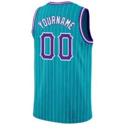 Custom Teal White Pinstripe Purple-White Authentic Basketball Jersey
