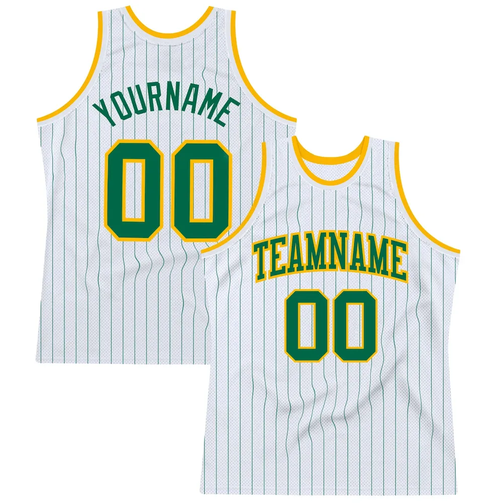 Custom White Kelly Green Pinstripe Kelly Green-Gold Authentic Basketball Jersey