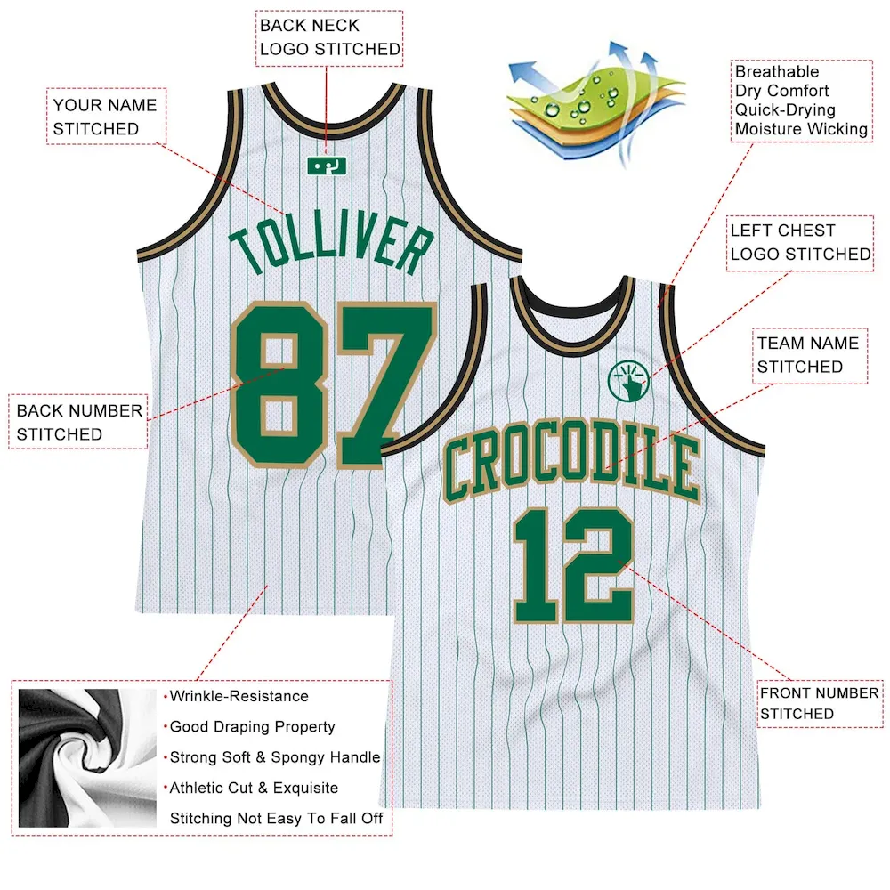 Custom White Kelly Green Pinstripe Kelly Green Old Gold-Black Authentic Basketball Jersey