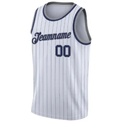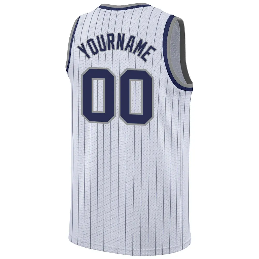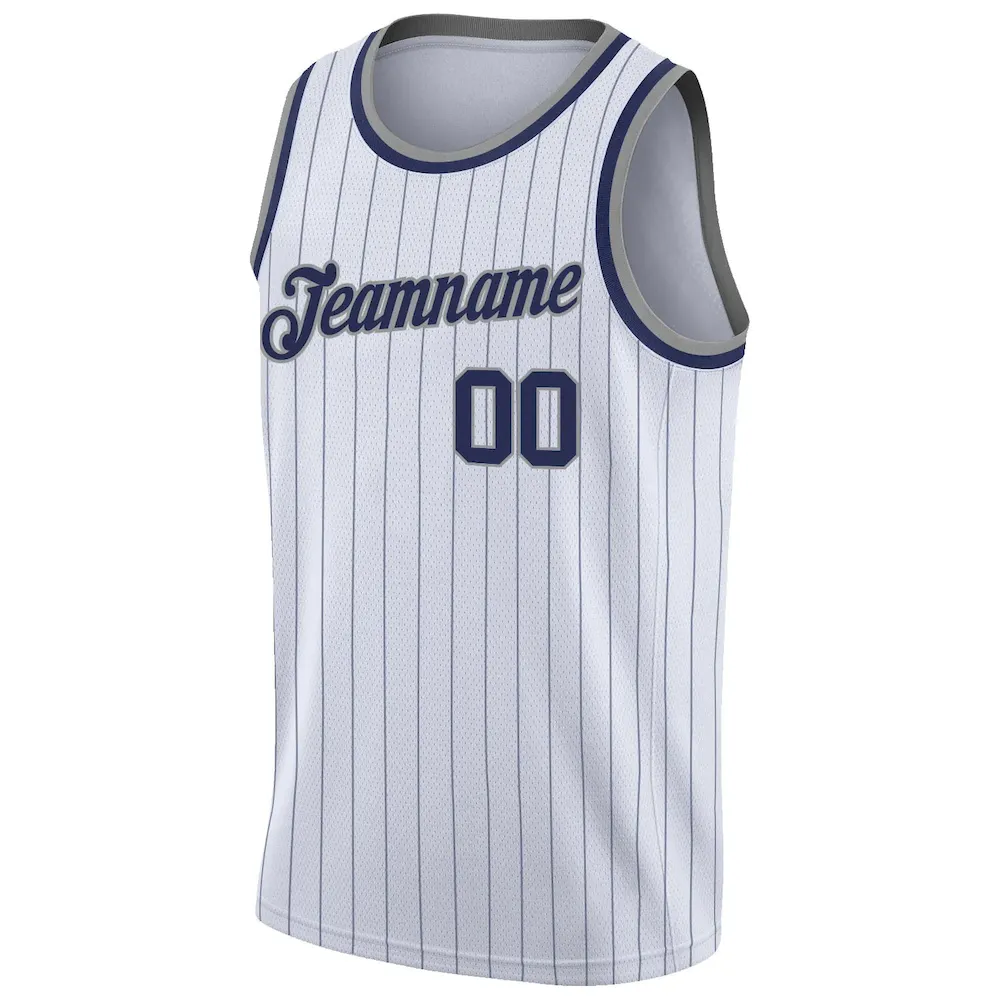 Custom White Navy Pinstripe Navy-Gray Authentic Basketball Jersey
