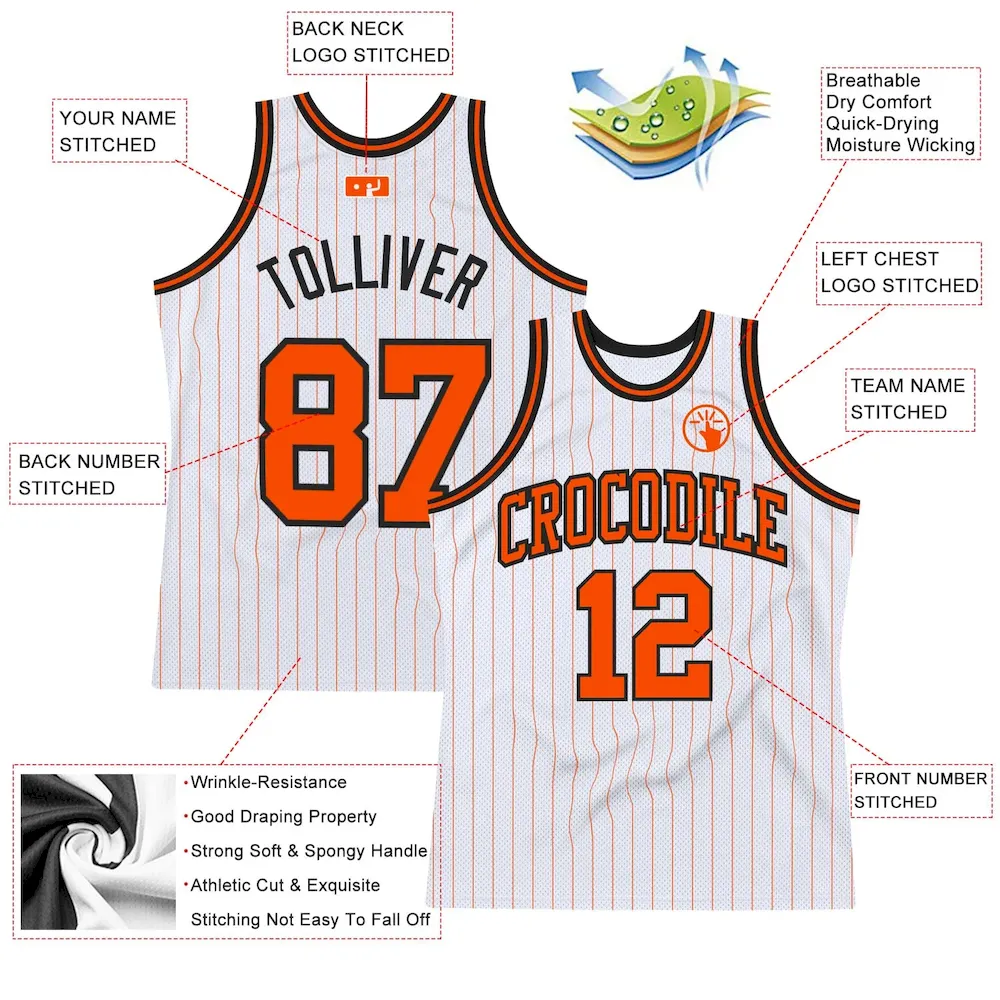 Custom White Orange Pinstripe Orange-Black Authentic Basketball Jersey