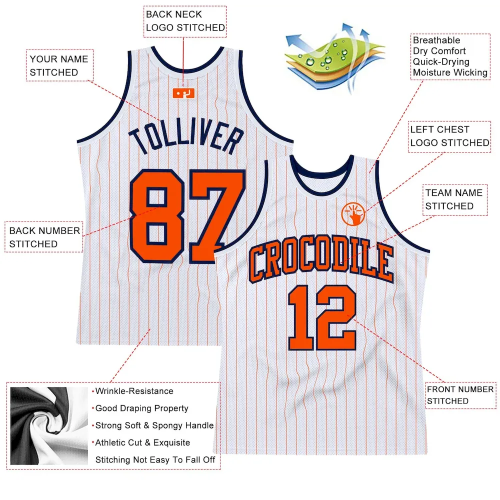 Custom White Orange Pinstripe Orange-Navy Authentic Basketball Jersey
