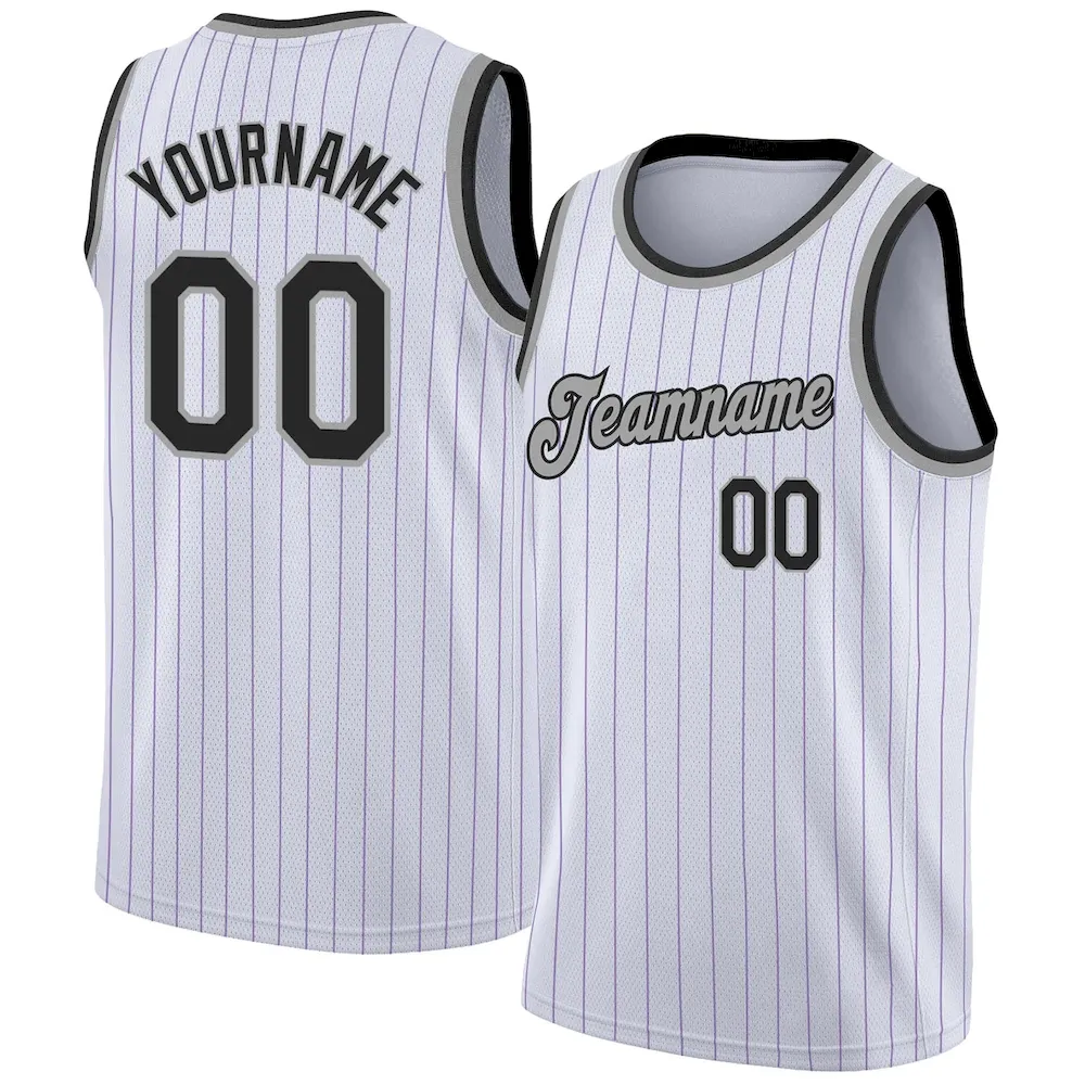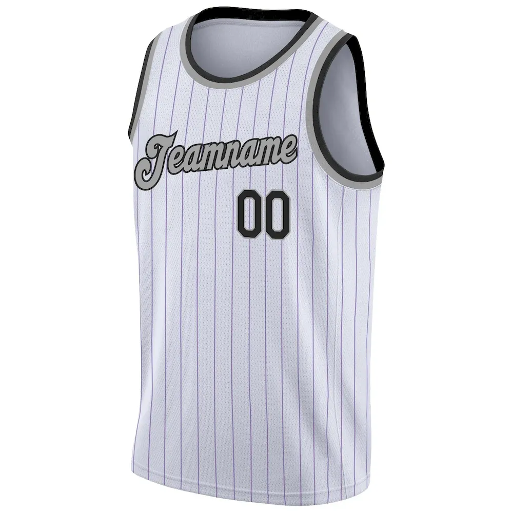 Custom White Purple Pinstripe Black-Gray Authentic Basketball Jersey