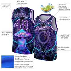 Custom Purple White 3D Pattern Design Magic Mushrooms Over Sacred Geometry Psychedelic Hallucination Authentic Basketball Jersey