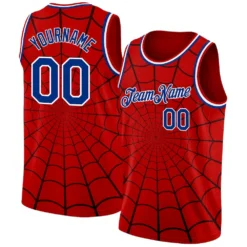 Custom Red Royal-White 3D Pattern Design Spider Web Authentic Basketball Jersey