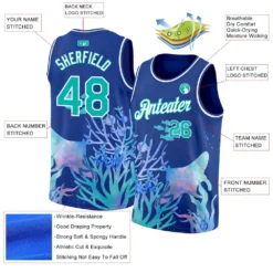 Custom Royal Aqua-White 3D Pattern Design Ocean World Authentic Basketball Jersey
