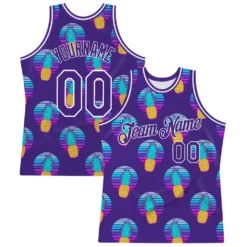 Custom Purple Purple-White 3D Pattern Design Pineapples Authentic Basketball Jersey