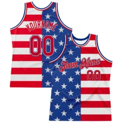 Custom Royal Red-White 3D Pattern Design American Flag Authentic Basketball Jersey
