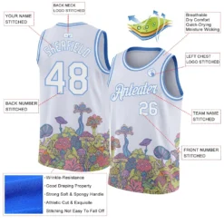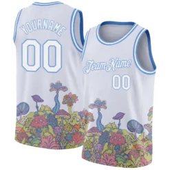 Custom White Light Blue 3D Pattern Design Colorful Flowers And Mushrooms Psychedelic Hallucination Authentic Basketball Jersey