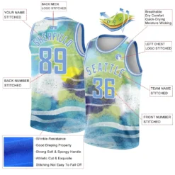 Custom White Light Blue 3D Pattern Design Abstract Landscape Watercolor Style Authentic Basketball Jersey