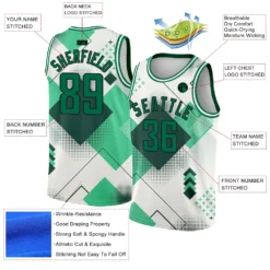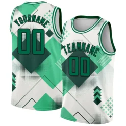 Custom White Kelly Green-Black 3D Pattern Design Geometric Shapes Authentic City Edition Basketball Jersey