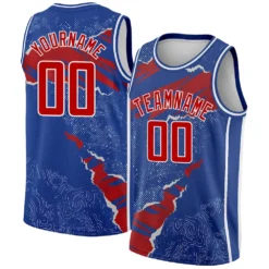 Custom Royal Red-White 3D Pattern Design Torn Paper Style Authentic Basketball Jersey