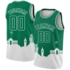 Custom Kelly Green White Holiday Travel Monuments Silhouette Authentic City Edition Basketball Jersey