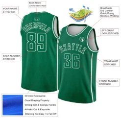 Custom Kelly Green White Geometric Shapes And Side Stripes Authentic City Edition Basketball Jersey