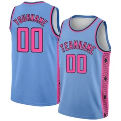 Custom Light Blue Pink-Black Side Panel Abstract Lines Authentic City Edition Basketball Jersey