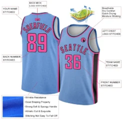 Custom Light Blue Pink-Black Authentic City Edition Basketball Jersey