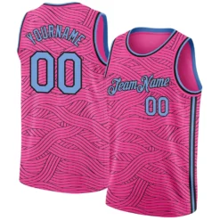 Custom Pink Light Blue-Black Authentic City Edition Basketball Jersey