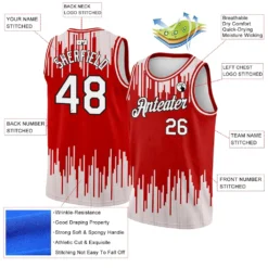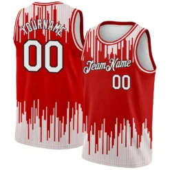 Custom Red White-Black Abstract Vertical Lines Authentic City Edition Basketball Jersey