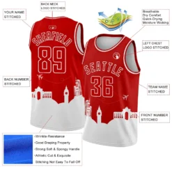 Custom Red White Holiday Travel Monuments Silhouette Authentic City Edition Basketball Jersey