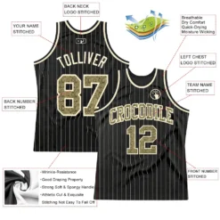 Custom Black Gold Pinstripe Black-Gold Authentic Basketball Jersey