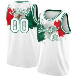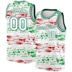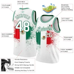 Custom White Kelly Green-Red 3D Mexican Flag Splashes Authentic Basketball Jersey