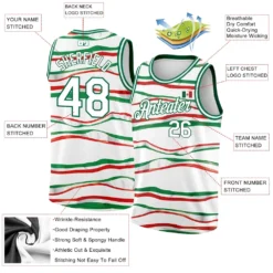 Custom White Kelly Green-Red 3D Mexican Flag Authentic Basketball Jersey