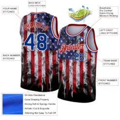 Custom White Royal-Red 3D American Flag Fashion Authentic Basketball Jersey