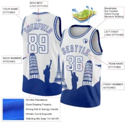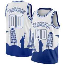 Custom White Royal Holiday Travel Monuments Silhouette Authentic City Edition Basketball Jersey