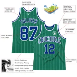 Custom Kelly Green White Pinstripe Royal Authentic Basketball Jersey
