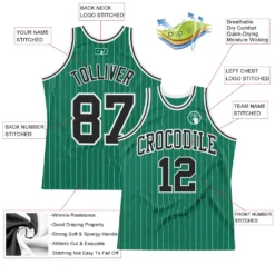 Custom Kelly Green White Pinstripe Black Authentic Basketball Jersey
