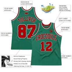 Custom Kelly Green Red Pinstripe Red-Black Authentic Basketball Jersey