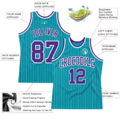 Custom Teal White Pinstripe Purple Authentic Basketball Jersey