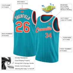 Custom Teal White Pinstripe Orange Authentic Basketball Jersey