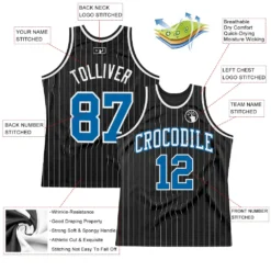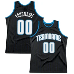Custom Black White Pinstripe Light Blue-White Authentic Basketball Jersey
