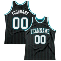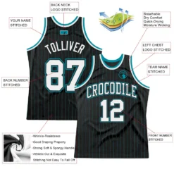 Custom Black Teal Pinstripe White Black-Teal Authentic Basketball Jersey