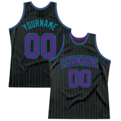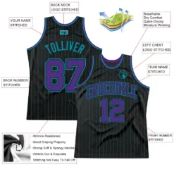Custom Black Teal Pinstripe Purple-Teal Authentic Basketball Jersey