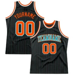 Custom Black Teal Pinstripe Orange-Teal Authentic Basketball Jersey