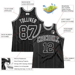 Custom Black White Pinstripe Black-White Authentic Basketball Jersey