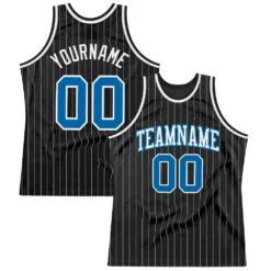 Custom Black Royal Pinstripe White-Blue Authentic Basketball Jersey