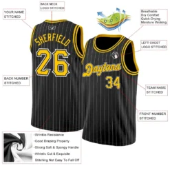 Custom Black White Pinstripe Gold-White Authentic Basketball Jersey