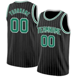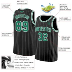 Custom Black White Pinstripe Kelly Green-White Authentic Basketball Jersey