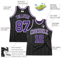 Custom Black White Pinstripe Purple-White Authentic Basketball Jersey