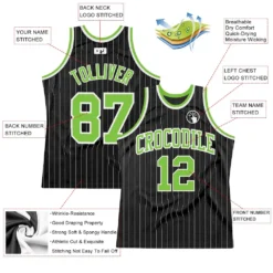 Custom Black White Pinstripe Neon Green-White Authentic Basketball Jersey