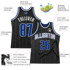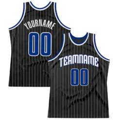 Custom Black White Pinstripe Royal-White Authentic Basketball Jersey