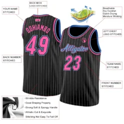 Custom Black White Pinstripe Pink-Light Blue Authentic Basketball Jersey